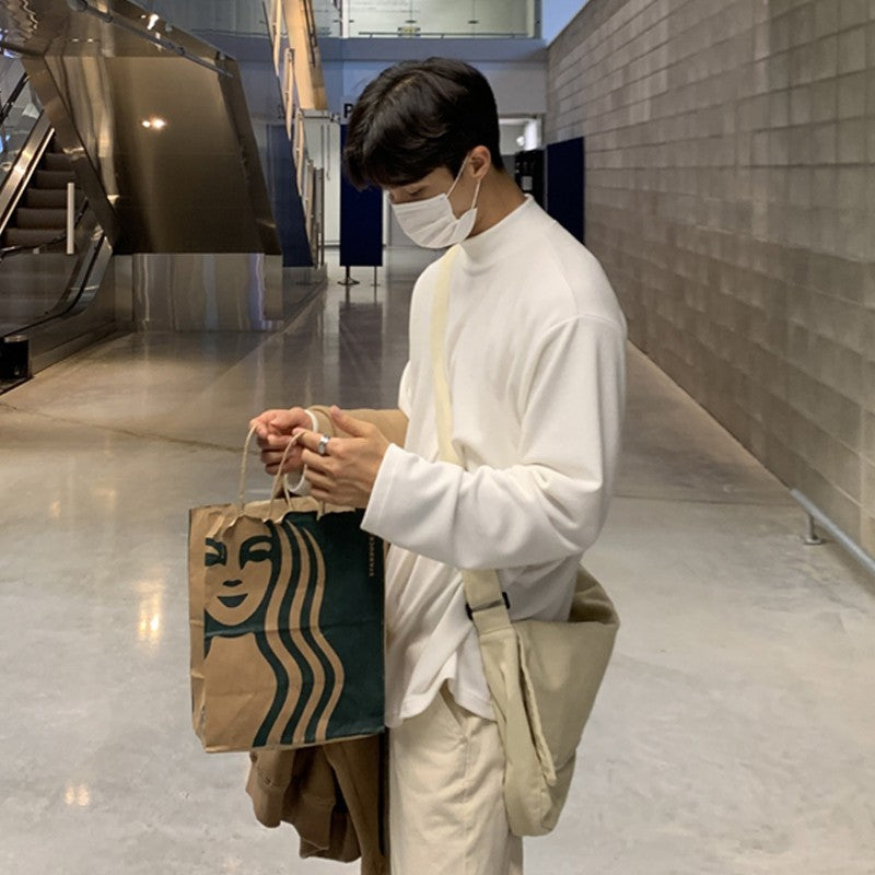 Korean Men's Long Sleeve Warm Mock Neck Sweater
